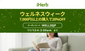 2025年11月13日まで!iHerbスペシャルクーポン!総額より20%割引セール開催中です!