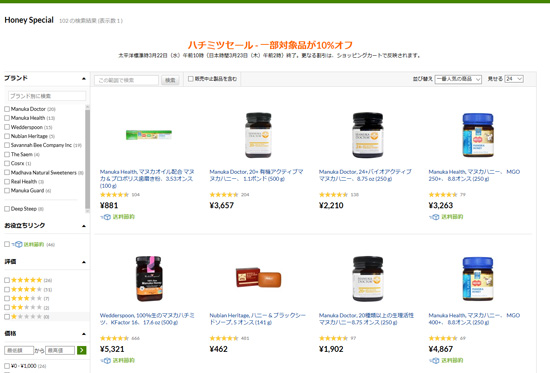 蜂蜜カテゴリ内11ブランド全商品の10%割引セール開催中です!