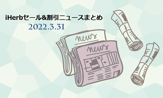 2022月3月31日付の「iHerb(アイハーブ)セール&割引ニュースまとめ」をお送りします。このニュースでは現在進行中の「iHerb割引イベント」の中でも特にお得なイベントをピックアップしてお伝えします。