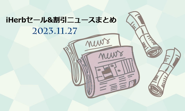 2023月11月27日付の「iHerb(アイハーブ)セール&クーポン&割引ニュース」をお送りします。このニュースでは現在進行中の「iHerb割引イベント」の中でも特にお得なイベントをピックアップしてお伝えします。